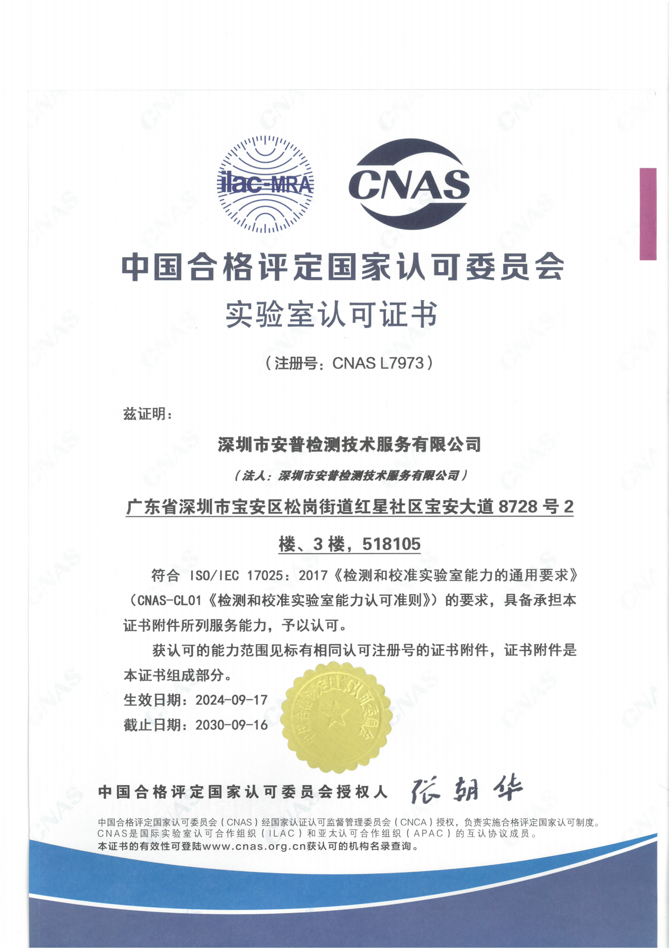 • CNAS資質證書